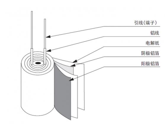 4、卷繞將陰極鋁箔和陽極鋁箔之間插入電解紙,然后卷繞成圓柱形,在卷繞工藝上陰極箔和陽極箔連接上端子。